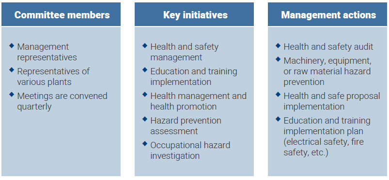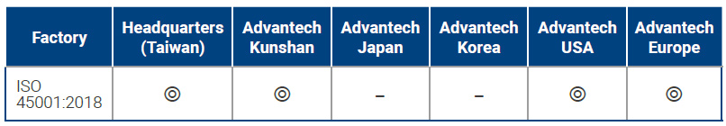 The OHSMS covers all workers, including Advantech employees and non-employee workers. From the corporate level down—and across regions—dedicated OHS personnel operate under the ISO 45001 framework, responsible for planning, implementation, supervision, and auditing to ensure the system's effective operation.