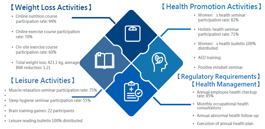 In today's fast-changing workplace, businesses' care for employees has shifted from traditional remuneration and benefits to a more holistic approach focused on health management and overall well-being. Employees' physical and mental health not only affects their job performance but also has a direct impact on the Company’s overall operations and long-term development. Ensuring employees' well-being goes beyond providing basic healthcare; it also encompasses mental health, work-life balance, as well as the care and support reflected in a company's corporate culture.