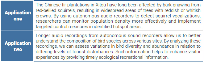 Besides soundscape ecology research, this project also offers practical application value for forestry:
