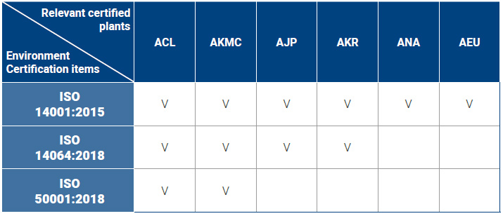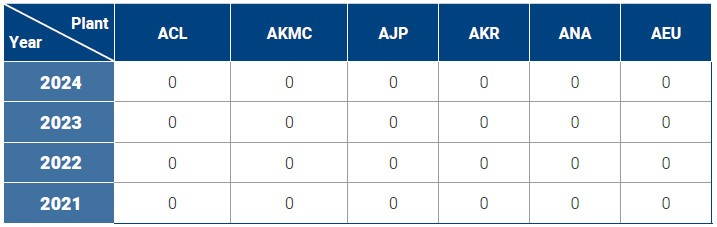 1. Waste weight statistics for ACL and AKMC are based on data reported by each plant to the competent authority, while statistics for AJP, ANA, and AEU are based on outsourced disposal data. -