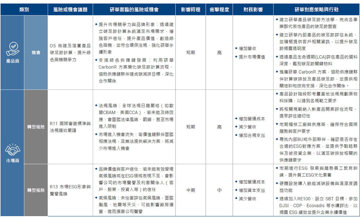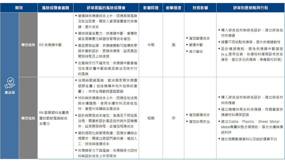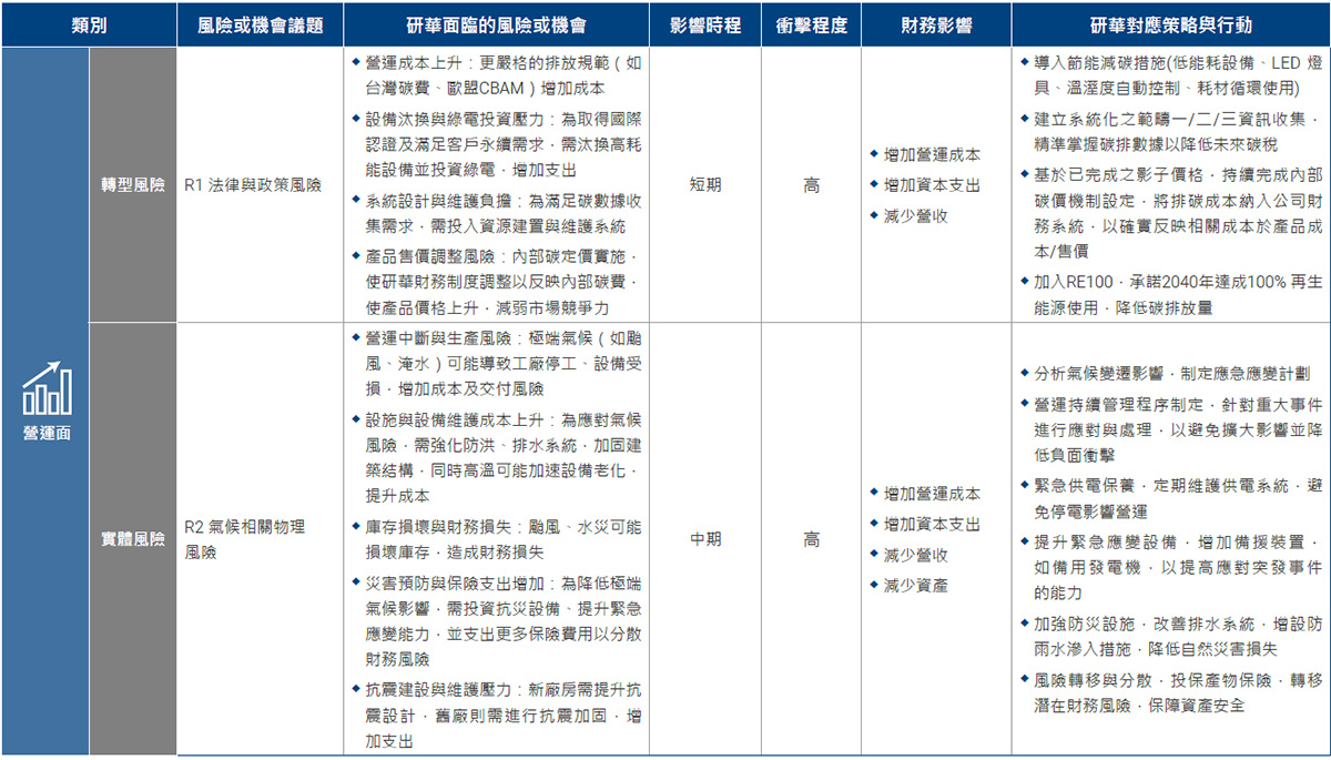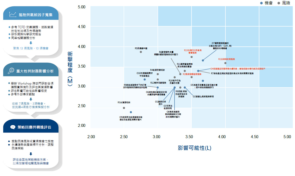 - 完成氣候相關財務揭露 (TCFD) 風險與機會評估