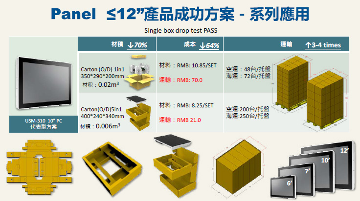 自 2023 年起,產品包裝材料設計團隊積極優化綠色包裝,採用蜂巢設計隔板取代傳統 EPE 緩衝材料,並提高再生材料使用比例。目前,包裝材料紙漿使用 90% 以上再生纖維,100% 達成目標。五公斤以下產品包材以紙塑取代 EPE, 2024 年技術達成率已達 90%。