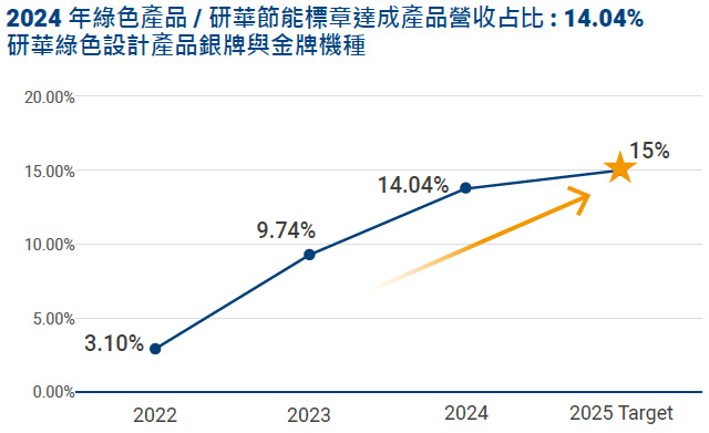 - 綠色設計系統類產品達成內部自主宣告標章銀牌占比