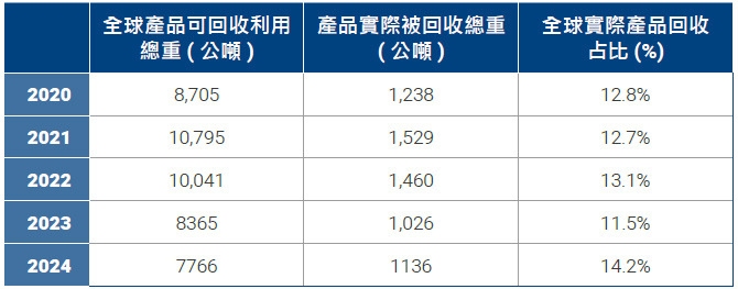 研華全球實際產品回收占比